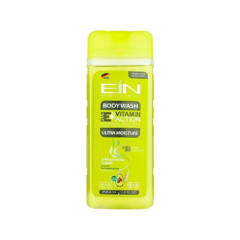 شامپو بدن ویتامینه و مرطوب کننده ای آی ان- شامپو بدن ویتامینه و مرطوب کننده آووکادو و لیمو ای آی ان Body Wash Vitamin Ultra Moisture Avocado and Lemon Ein، حاوی ویتامین ای، ب3 و عصاره همیشه بهار است. انتخاب یک شامپو بدن مناسب از روتین های مهم روزانه جهت مراقبت از پوست بدن می باشد که لازم است همواره از شوینده بهره مند بشویم که علاوه بر پاکیزگی به حفظ سلامت پوست نیز کمک کند. شامپو بدن ویتامینه و مرطوب کننده آووکادو و لیمو ای آی ان به دلیل دارا بودن ویتامین می تواند علاوه بر شویندگی و پاکیزگی، در حفظ لطافت پوست بدن شما نیز مؤثر باشد. رایحه خوشبو این شامپو بدن می تواند حس خوشایندی را در حین استحمام برای شما به ارمغان بیاورد.