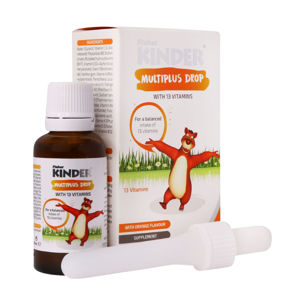 به دلیل رشد و نمو سریع، کودکان به انواع مختلفی از ویتامین‌ها و مواد معدنی نیاز دارند. این مواد مغذی برای عملکرد طبیعی سلول‌هایشان حیاتی بوده و برای رشد، انرژی، توجه، یادگیری و حافظه آنها حیاتی است. کارشناسان توصیه می‌کنند اگر ویتامین‌های مورد نیاز کودکان از طریق رژیم غذایی تامین نشد، نسبت به خرید بهترین مولتی ویتامین کودکان اقدام نمایید. قطره مولتی پلاس فیشر کیندر با داشتن ۱۳ نوع ویتامین محلول در آب و چربی با دوزهای مناسب و طعمی مطلوب برای نوزادان و کودکان کمتر از دو سال مناسب است.