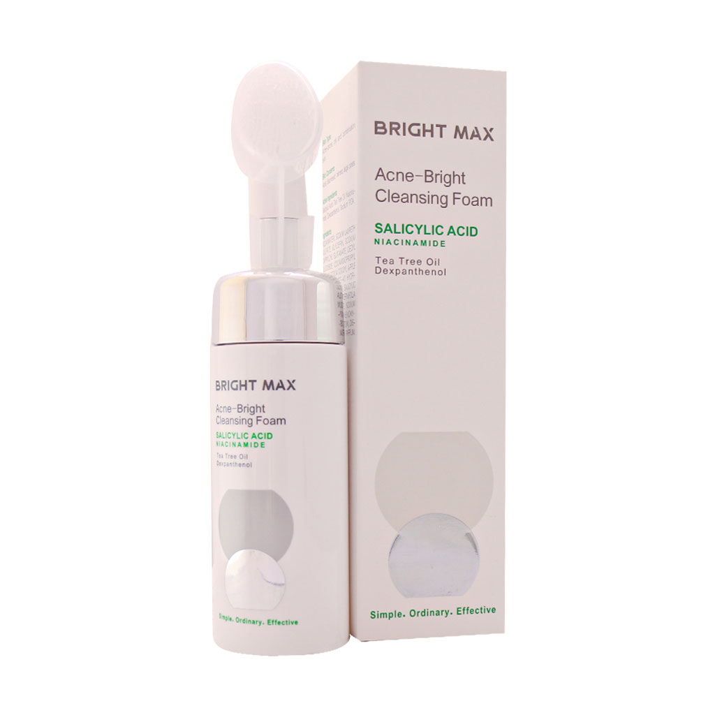 برند برایت مکس یک برند باکیفیت ایرانی است که محصولات متنوعی را در زمینه مراقبت از پوست تولید میکند. در این میان فوم شستشوی صورت آکنه برایت برایت مکس نیز شوینده ای اختصاصی برای پاکسازی چربیها و آلودگیهای پوست چرب و مستعد جوش است. این محصول حاوی سالیسیلیک اسید و روغن درخت چای است که با اثرات لایه برداری و آنتی باکتریال طبیعی باعث پاکسازی منافذ و چربی پوست شده و از ایجاد جوش جلوگیری میکند. این فوم به واسطه نیاسینامید، ضمن آبرسانی و ترمیم لایه محافظ پوست به درمان آکنه و لک ناشی از آن و تنظیم چربی پوست کمک میکند.