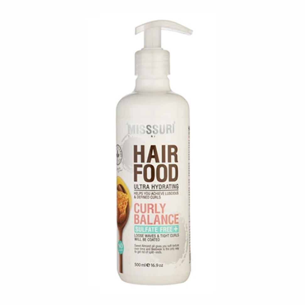 ماسک مو هیر فود میسوری مدل CURLY BALANVE مرطوب کننده و آبرسان میسوری حاوی روغن بادام شیرین و موم عسل . مرطوب کننده , حالت دهنده و آبرسان موهای فر و مجعد .