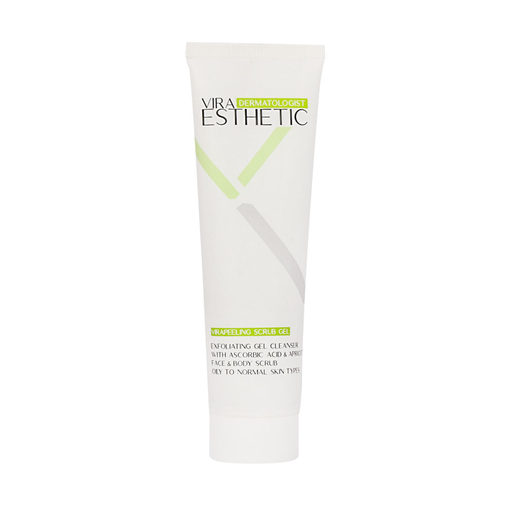 ژل اسکراب پوست صورت و بدن ویرا استتیک مناسب پوست چرب و معمولی فرموله شده است. این محصول با داشتن ترکیبات موثر جهت تنظیم ترشح چربی و پیشگیری از علت ایجاد جوش استفاده میشود. این ژل شستشوی پوست به عنوان پاک کننده قوی با عملکرد دوگانه منافذ پوست را از هر گونه آلودگی، سلولهای مرده و چربی اضافی تخلیه میکند و ظاهری لطیف و شفاف را برای پوست شما به ارمغان میآورد. همچنین با خاصیت ضد باکتری از رشد باکتریهای آکنه زا جلوگیری میکند. ناگفته نماند آسکوربیک اسید موجود در این ژل اسکراب به جوانسازی پوست شما میپردازد.