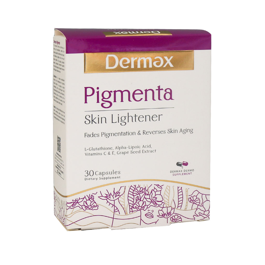 کپسول پیگمنتا درمکس ترکیبی منحصر به فرد از مواد کارآمد و شناخته شده با اثرات آنتی اکسیدانی قوی و موثر در جلوگیری از پیری پوست، حذف لکهها و رنگدانههای پوستی و نیز درخشندگی و سفیدی آن است. در ساخت پیگمنتا از مواد نگهدارنده و شیرین کننده استفاده نشده است و همین امر ثمر بخشی قرص پیگمنتا را افزایش میدهد. کپسول پیگمنتا به واسطه داشتن ترکیبات آنتی اکسیدانی رادیکالهای آزاد پوستی را از بین میبرد و نقش موثری در کاهش چین و چروک دارد. مصرف پیگمنتا به داشتن پوستی روشن و عاری از چین و چروک کمک میکند. در کنار استفاده از قرص پیگمنتا Dermax پیشنهاد میشود. استفاده از پیگمنتا به یکنواخت نمودن رنگ چهره کمک موثری میکند.