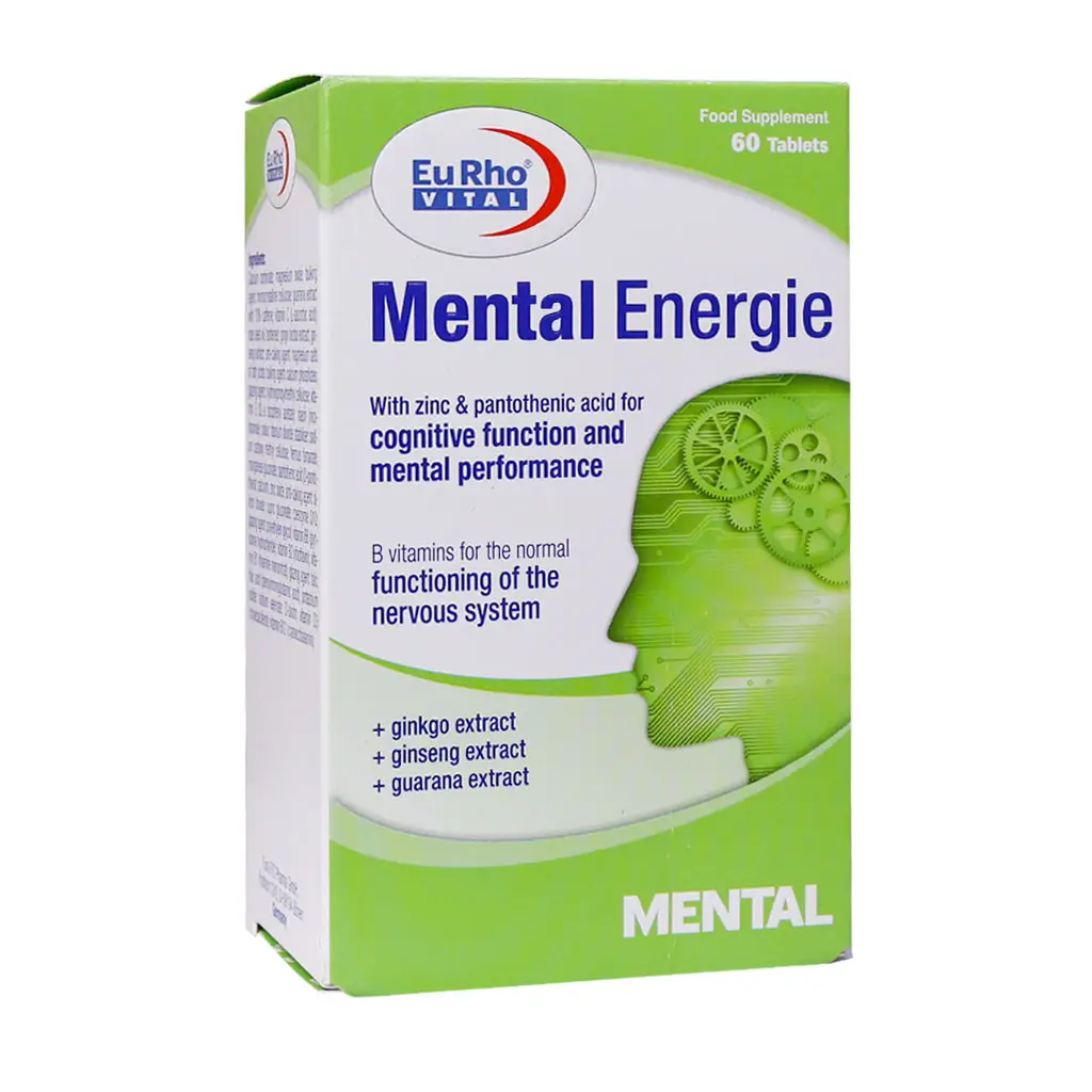 قرص منتال انرژی یوروویتال حاوی ترکیبی متعادل از ویتامینها، مواد معدنی و عصارههای گیاهی از جمله جینکوبیلوبا، جینسینگ، عصاره گوارانا و کوآنزیم کیوتن و … بوده که به تقویت قدرت ذهنی، تقویت حافظه و عملکرد طبیعی سیستم عصبی کمک میکند. منتال انرژی بهترین مولتی ویتامین برای تقویت حافظه است.